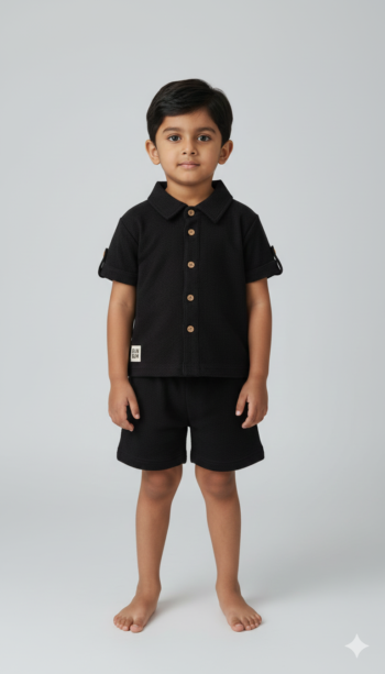 Crafted in premium waffle-textured cotton, our Waffle Co-Ord Set for Boys blends elevated comfort with timeless style. Designed to be soft, breathable, and gentle on young skin, this set ensures all-day ease for active little ones. The thoughtfully tailored shirt pairs effortlessly with matching shorts, offering a refined yet relaxed silhouette. Perfect for everyday wear, travel, playdates, and casual occasions, it transitions seamlessly from comfort to style. Available in six sophisticated colours, each shade is curated to suit modern kids’ wardrobes. A versatile essential that reflects quality, simplicity, and understated luxury.